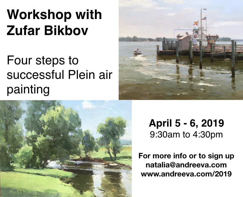 During his 2 full day workshop with nationally known plein air artist Zufar Bikbov will teach you the four-step approach to working on a painting with practical applicat