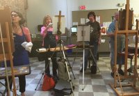 Our easels are arranged in a semi-circle around the modeling stand, which shifts our literal vantage point and alters the composition of light and shadow. By the end of the session there is a unique work at each station representing an individual’s particular interpretation, perception and personal style.